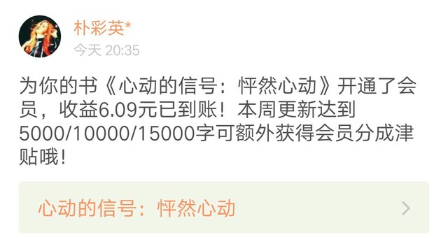 因为平常都没有人为我开过会员,真的非常感谢你的信任呀@朴彩英*