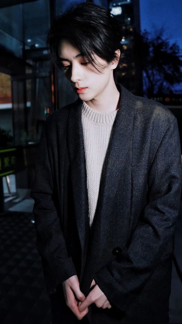 邓孝慈也选择了西服,不过里面是低领的针织毛衣,保暖又大气,给人一种舒服感。