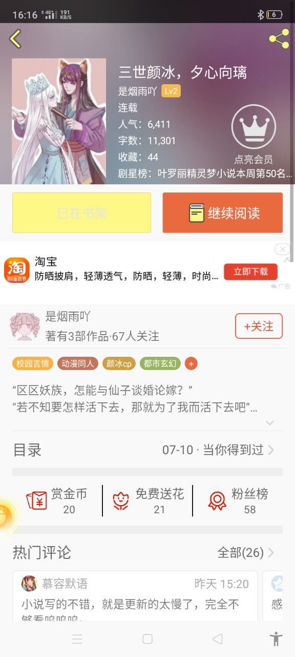 陌陌这本书的作者是“是烟雨吖”