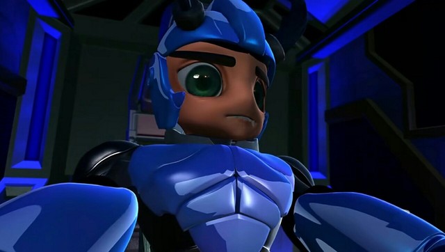 在激烈的战斗中,青色骑刃王的铁甲龙奋力挣扎,试图挣脱来自对手的束缚。然而,铁甲龙相比起天牛,终究还是逊色一些,败下阵来,被侧翻在场地上,扬起一片尘土。此时,赤焰七星也赶到了现场,他看着驾驶蓝色骑刃王的天牛,眼中闪过一丝不满。