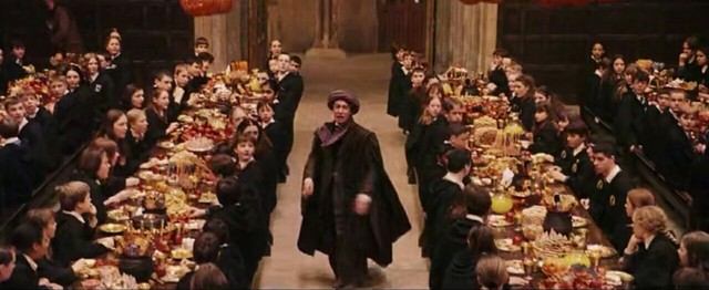 在此之后,礼堂里在尖叫声中乱成一团,邓布利多教授不得不使他的魔杖头上爆出几次紫色的烟火,大家才安静下来。