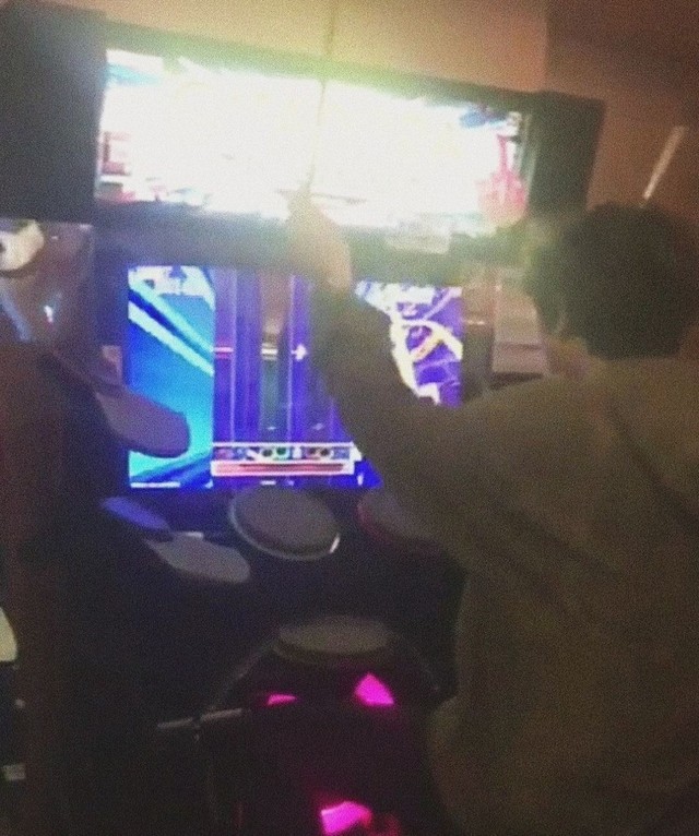 夜晚本该是安静的,只有朴灿烈一个人在游戏区打着音乐游戏。