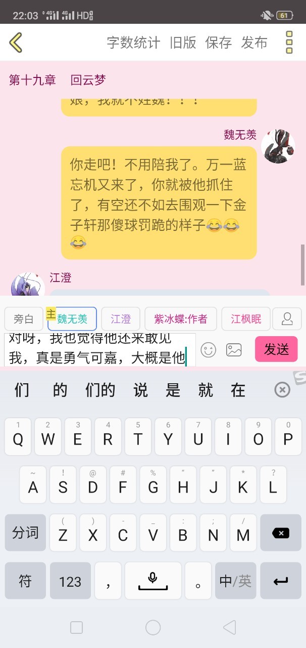 魏无羡你走吧!不用陪我了。万一蓝忘机又来了,你就被他抓住了,有空还不如去围观一下金子轩那傻球罚跪的样子😂😂😂