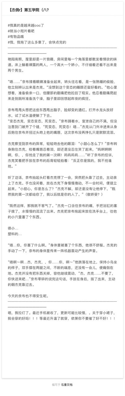作者18号就上回学了……开学之后就只有周六日能碰手机了……我会尽力为你们争取点时间写文……