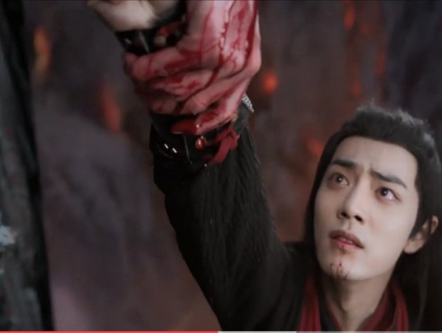 魏婴(字无羡)呵是我害了她(说完将蓝湛的手甩开,闭上眼睛,落入悬崖)