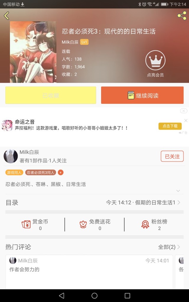 忍者必须死3:现代的的日常生活最新章节
