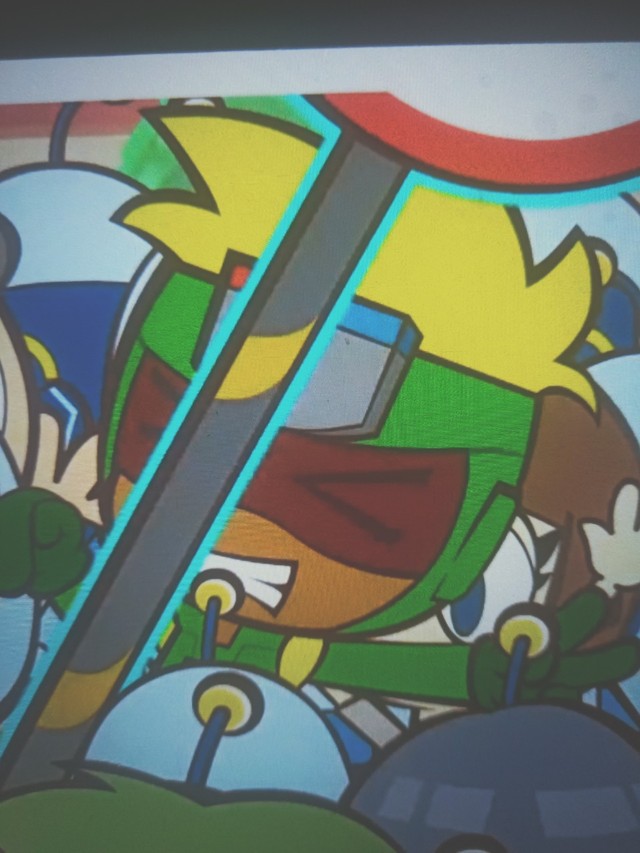 花心超人的磁铁发出光,将路边的牌子吸引了出来。