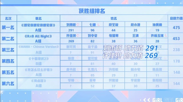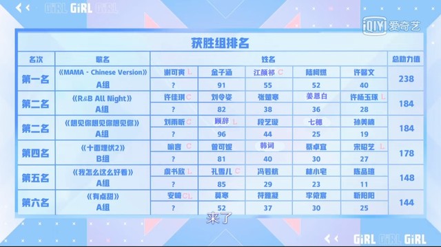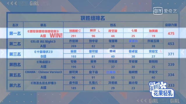 蔡徐坤现在我们来看一下六个获胜小组的成绩