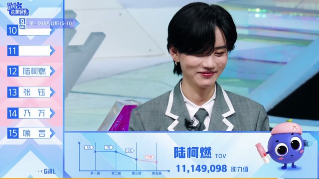 蔡徐坤第12名,来自tov娱乐的训练生陆柯燃。