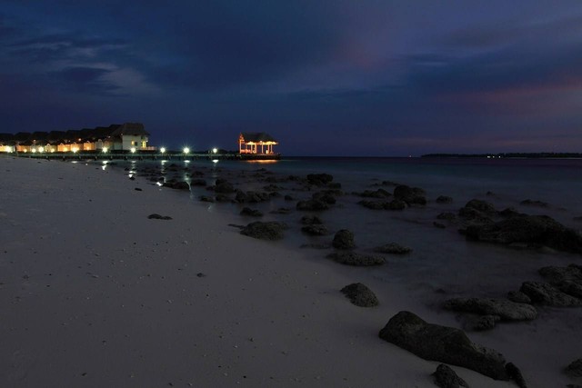 晚上,夜色渐渐笼罩了海滩。