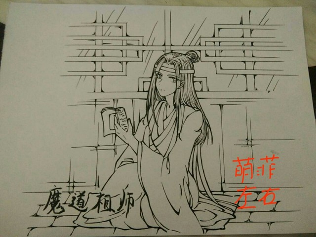 哦哦,还有我的勾线笔、高光笔(一大堆)画出来效果超级好看,我昨天试着画了一个忘机,你们要看吗?