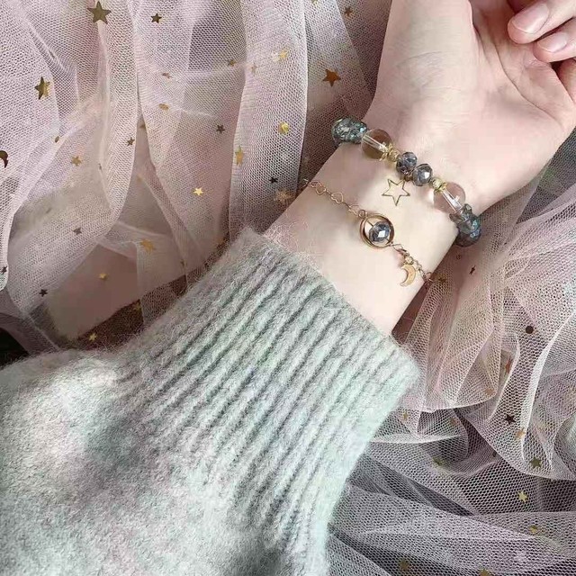 陌搽把手链上的蓝水晶反向的转了一圈