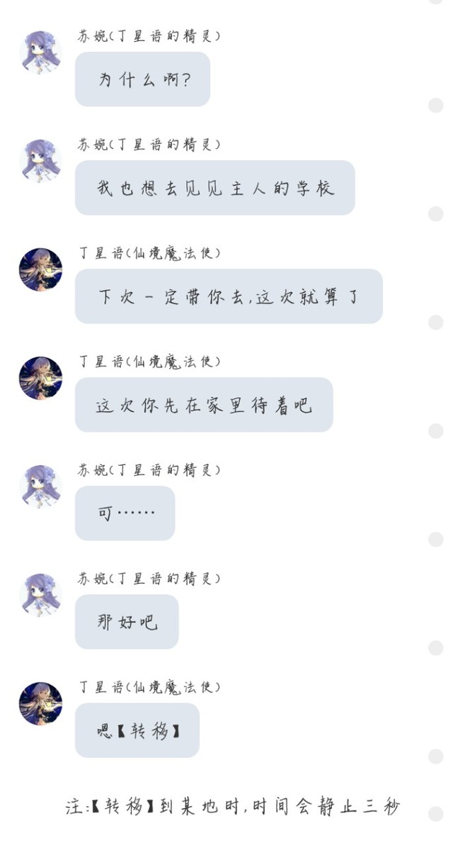 丁星语(仙境魔法使)哎,虽然有【转移】,但是又不能在别人面前露馅,偏偏得转移在学校外面没人的地方