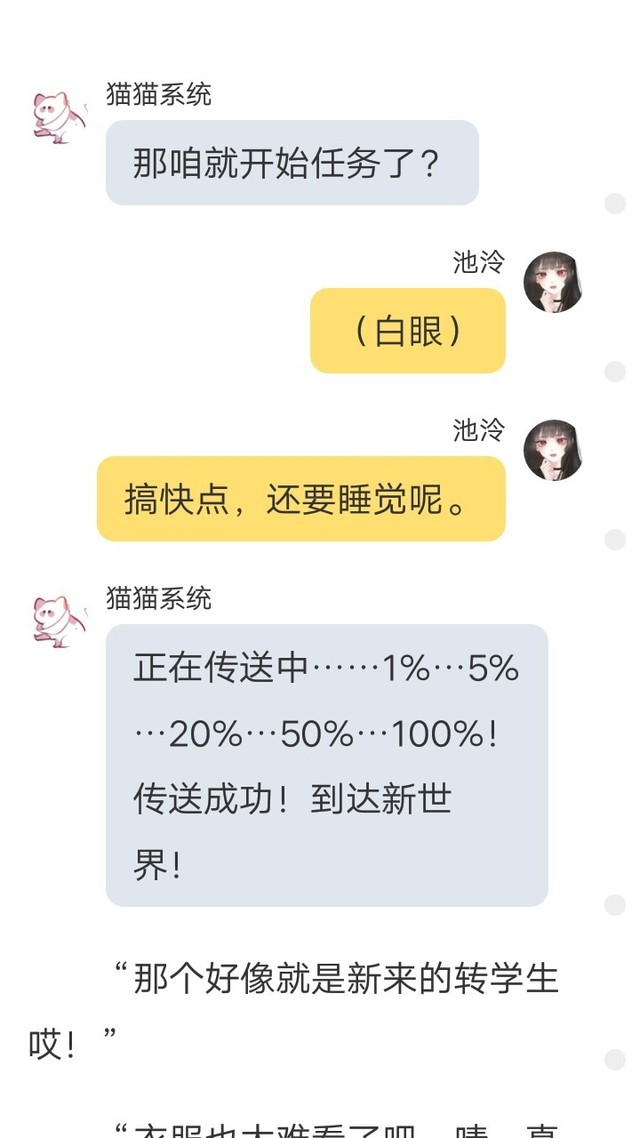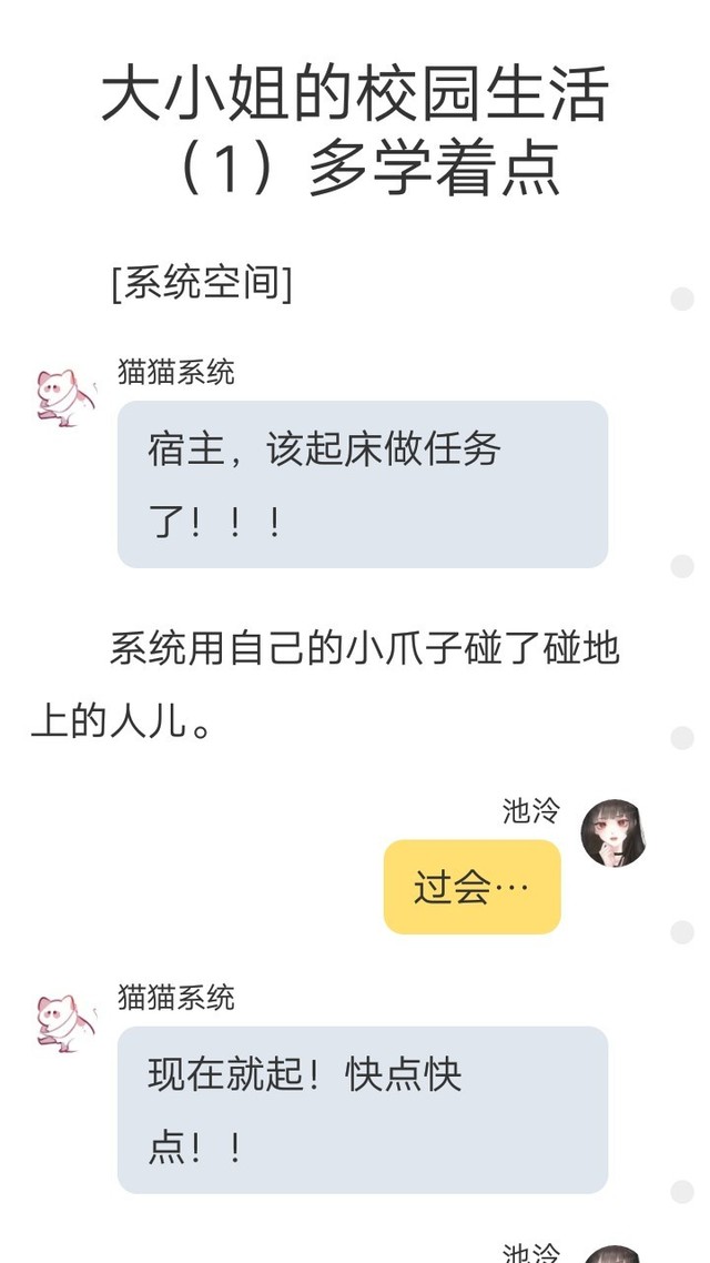 宋欣冉开篇,以一只萌萌的小猫喊宿主起床开头,别有一番趣味。