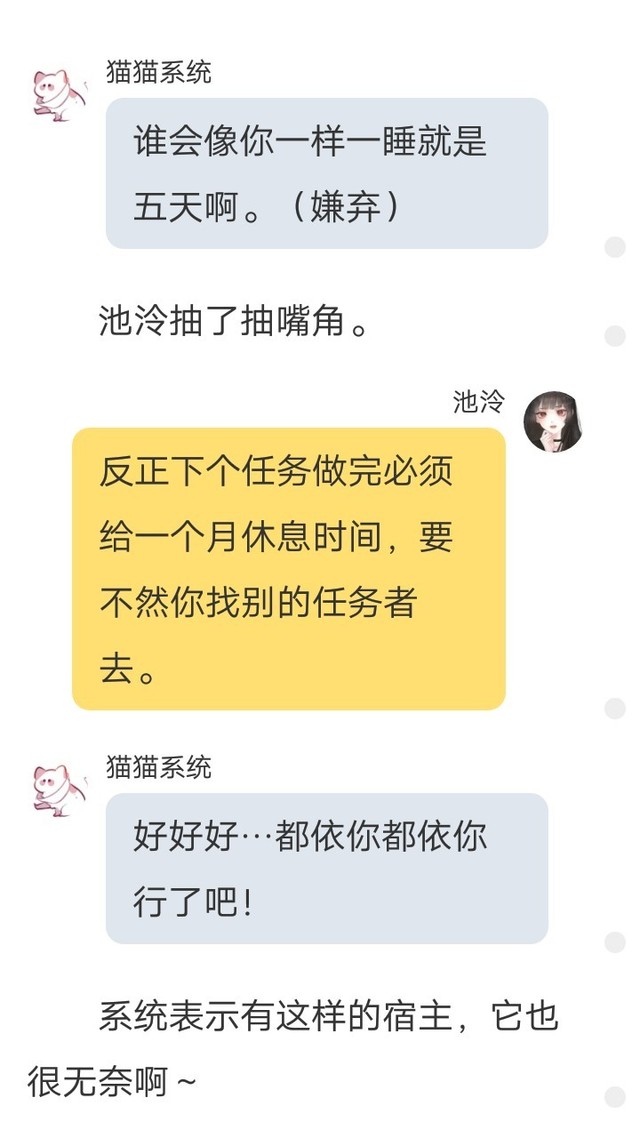 宋欣冉但是面对这样的宿主,猫猫系统除了怨言连连,还特别无奈¬_¬`。