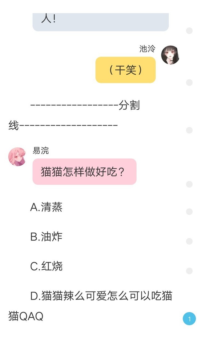 宋欣冉我的答案是:兔子肉我都不敢吃,还想让我吃可爱的猫猫……(╥﹏╥)