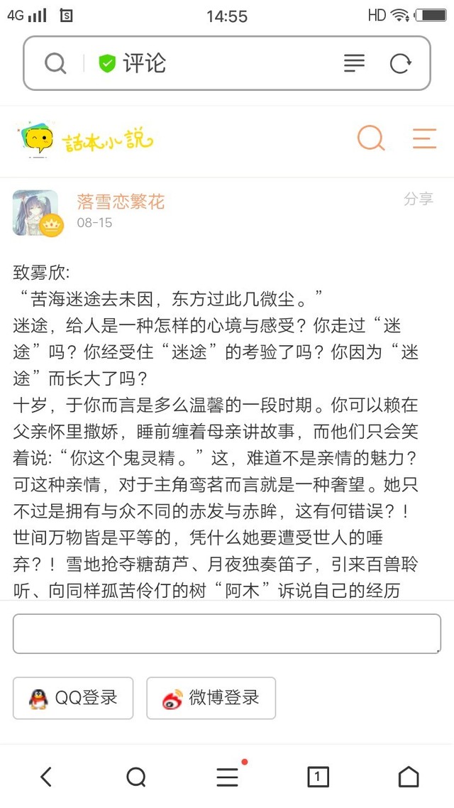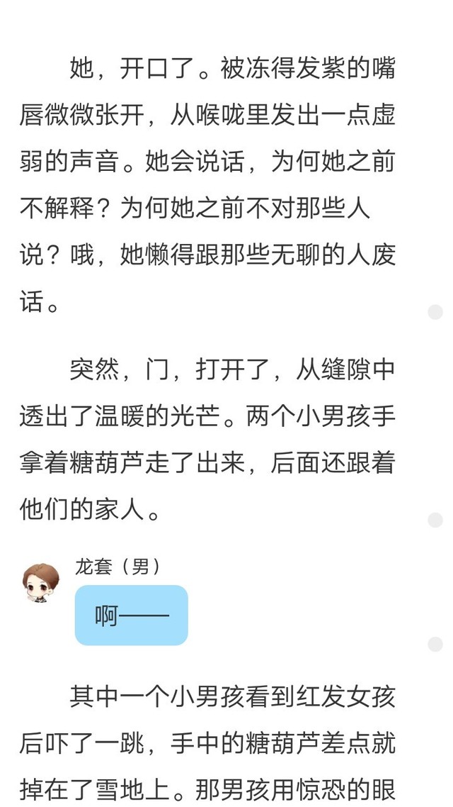 宋筱筱2.环境描写运用得当,其中有一章一整篇都在写环境描写。我看着只能自叹不如……大佬的名号还是赐予雾欣吧。
