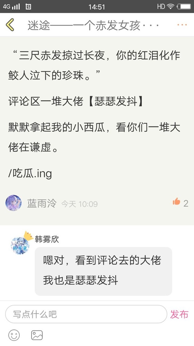 宋欣冉然后,我去翻了翻评论区,真心觉得那些大佬的长评比我这个渣渣赏析得好多了😳。