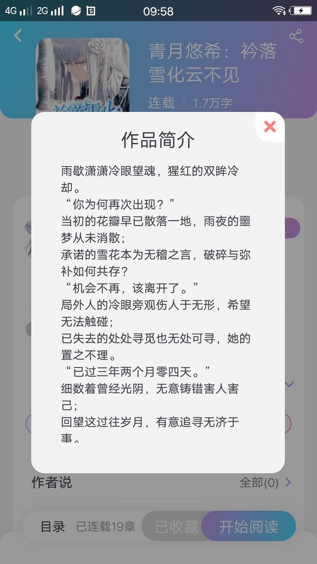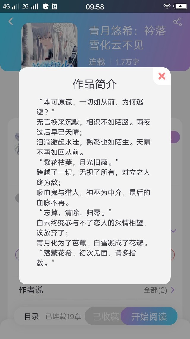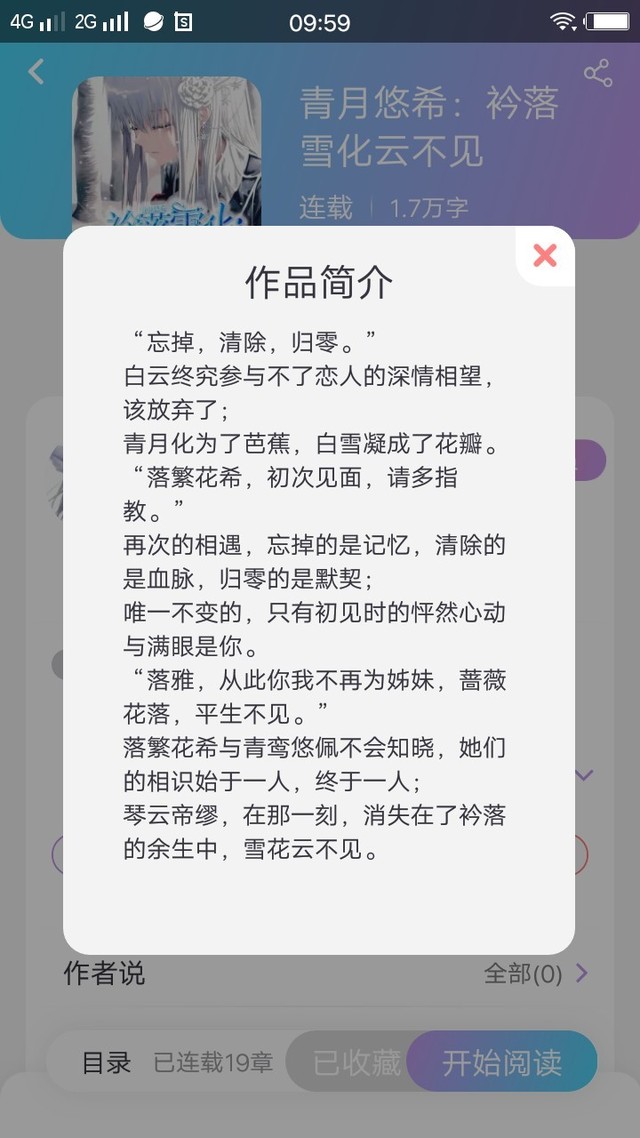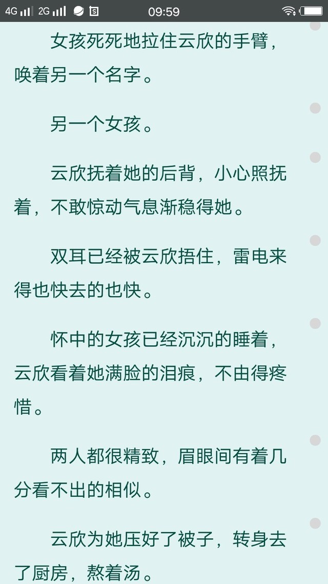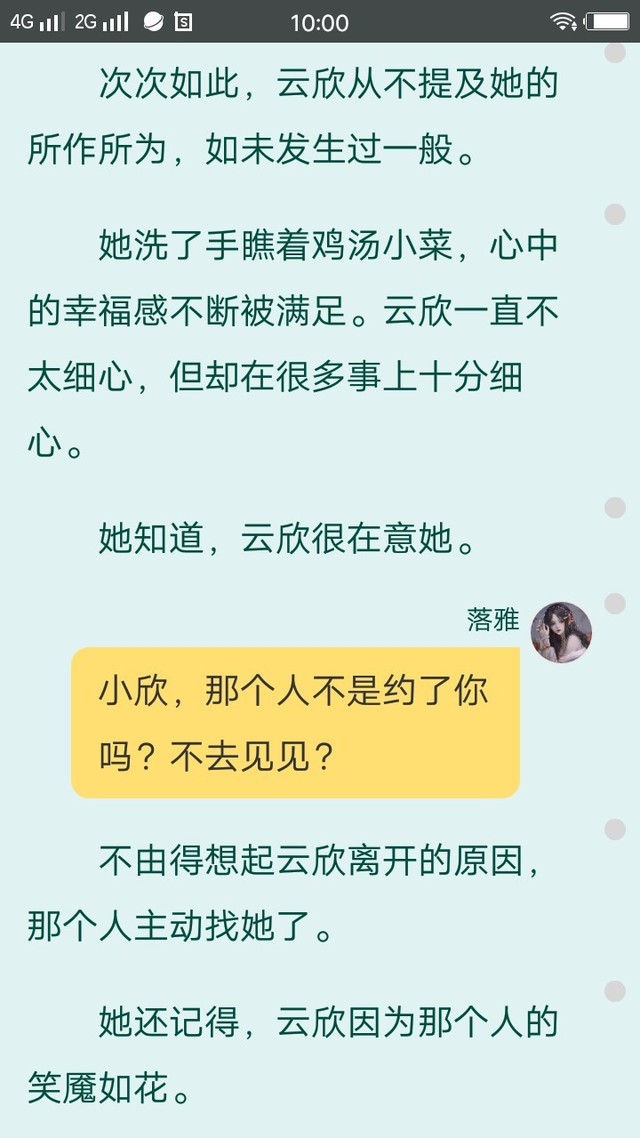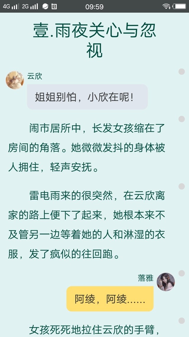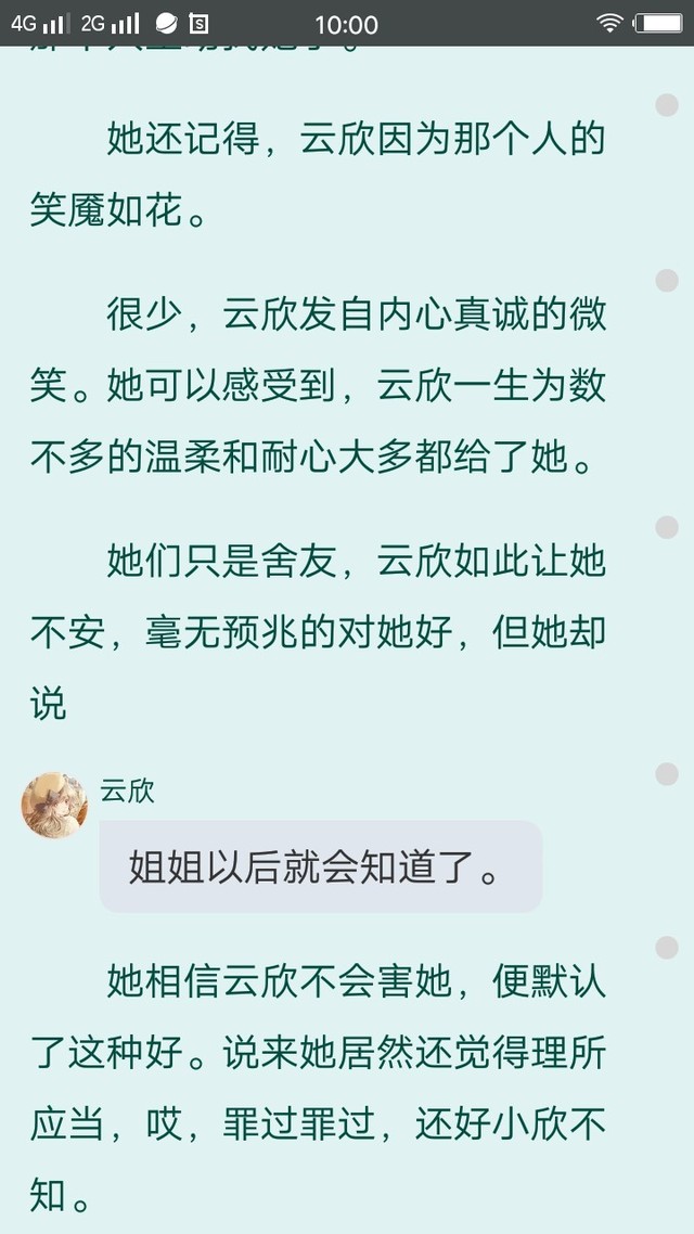 落雪(繁花)这本书,完全融入了作者的情感。小欣将自己代入其中,愿意化身守护者“云欣”默默保护“落雅”。