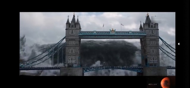 英国伦敦泰晤士河的河水上涨,一些建筑将被永远淹没,同时,海啸也来临了。