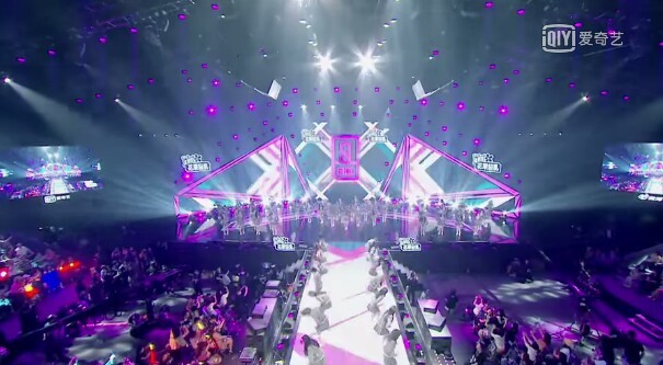 聚光灯打开,照亮舞台。音乐响起,几十名训练生们又开始了熟悉的动作。