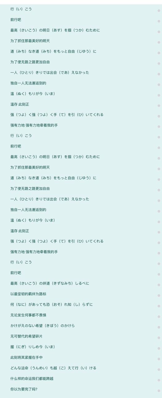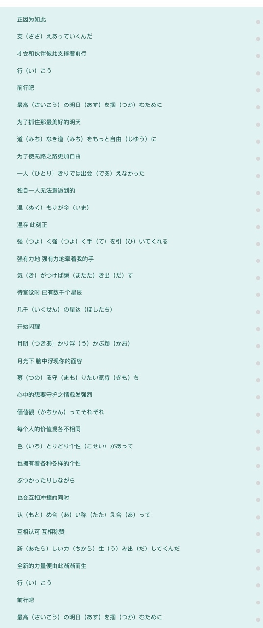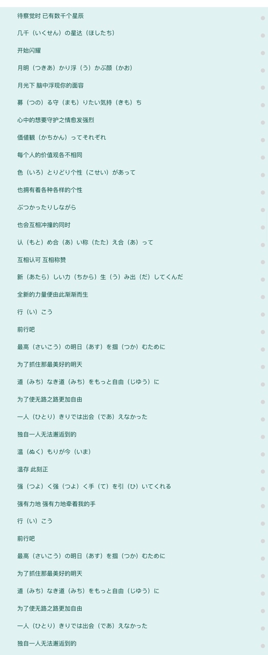 陆心岚募る守りたい気持ち価値観ってそれぞれ色とりどり個性があって、ぶつかったりしながら求め合い称え合いって、新しい力生み出して組んだ行こう,最高の明日をつかむために道無き道をもっと自由に一人きりでは出会えなかった。温もりが今強く強く手を引いてくれる。行こう最高の明日をつかむために道無き道をもっと自由に一人きりでは出会えなかった。温もりが今強く強く手を引いてくれる。行こう最高の絆道標に何があっても恐れ知らずに掛け替えのない希望のかけら、握りしめ今どんな運命も超えていける。