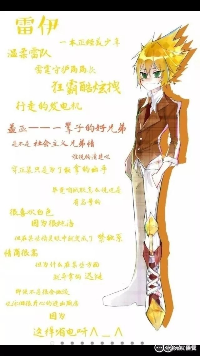 雷伊电系。性格:老妈子一个、有着很强的指挥能力、聪明。身份:战联队长,赫尔卡星守护者。