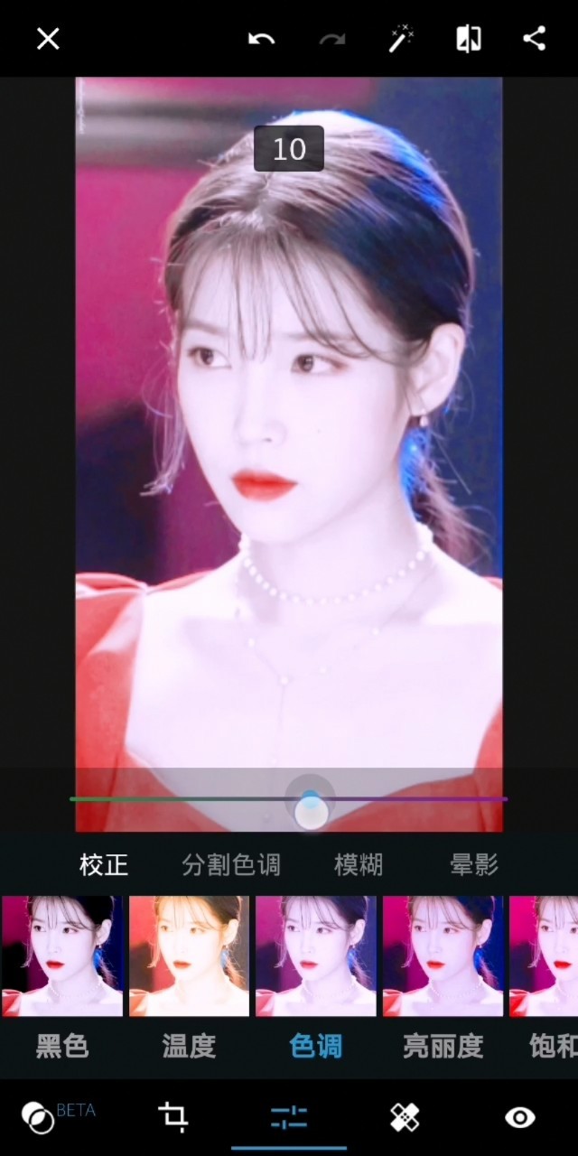 张艺兴亲亲老婆然后照片编辑器,点开颜色。
