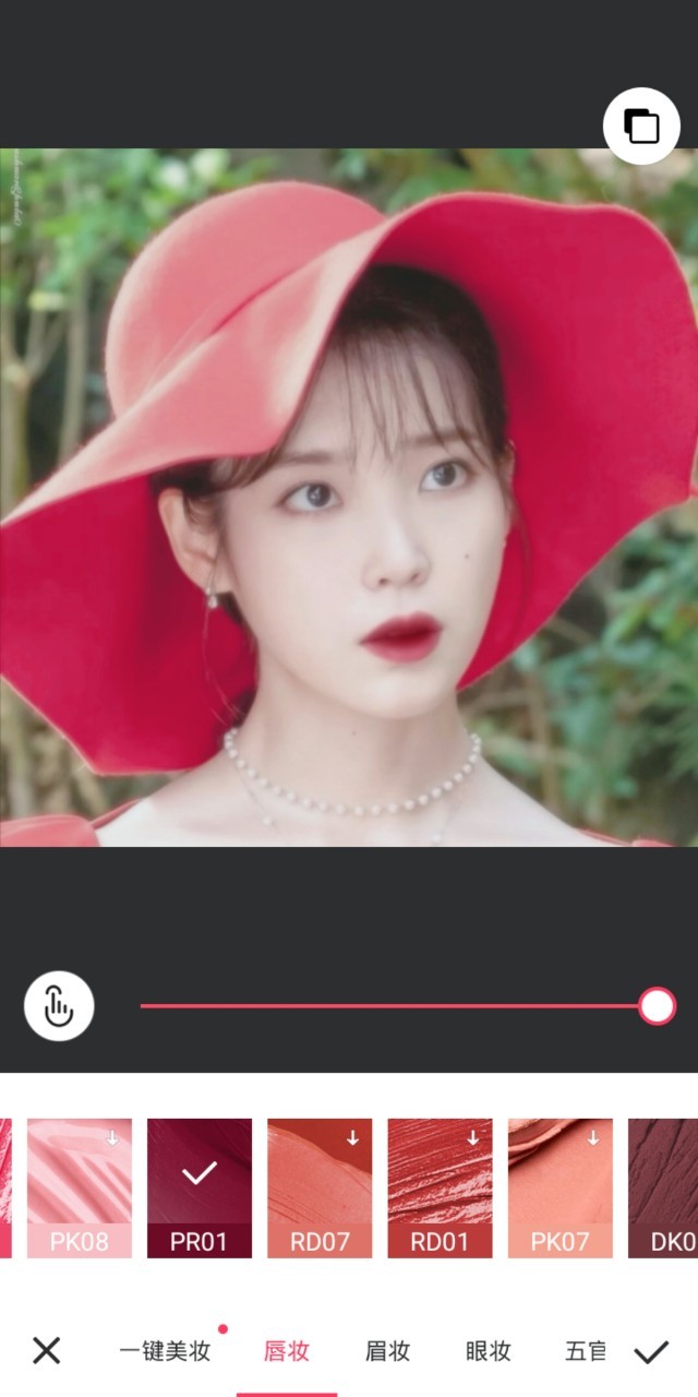 张艺兴亲亲老婆进入美图秀秀,然后图片美化,点击去美化,找到唇妆,点击PR01。