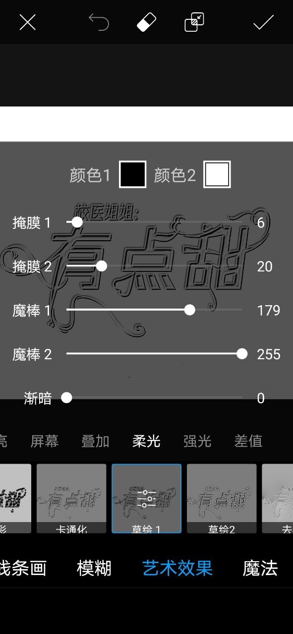 四小懒草绘1—柔光,数值如图