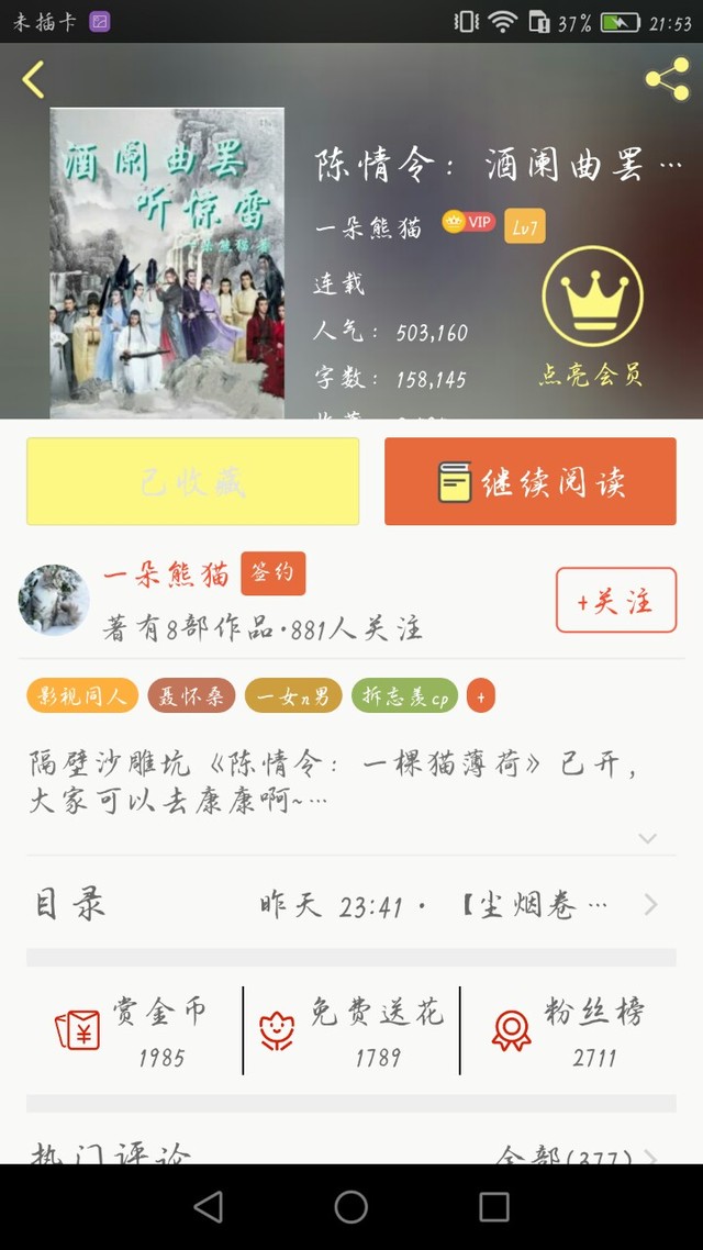 作者第二个,酒阑曲罢听惊雷,有时间可以去看看哦,也是非常好看的一本书