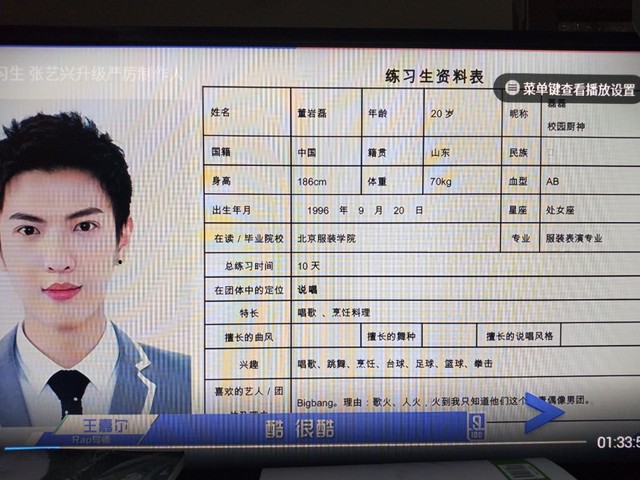 张艺兴看着董岩磊的基本资料