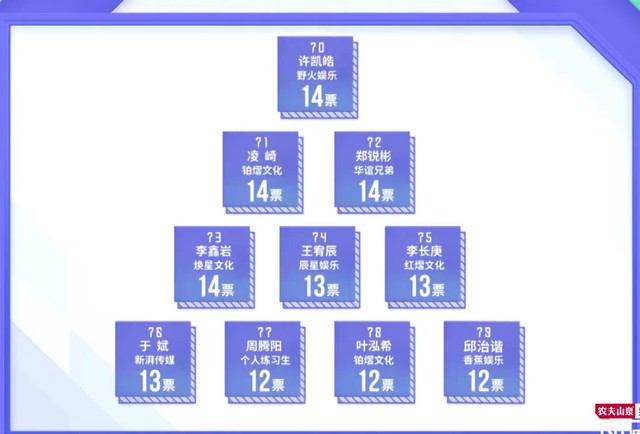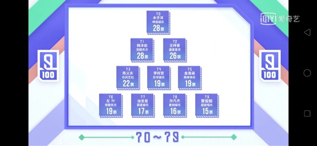 黄冉我们现在公布70到79的练习生名单
