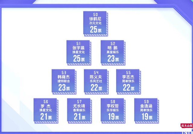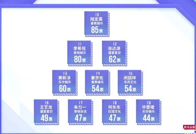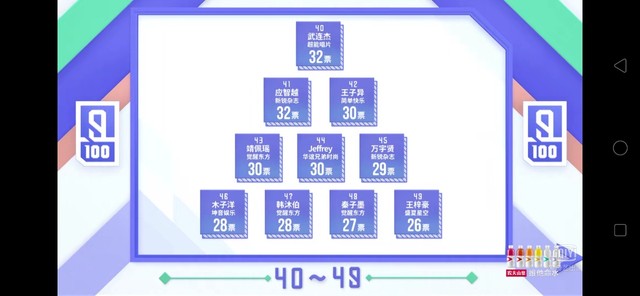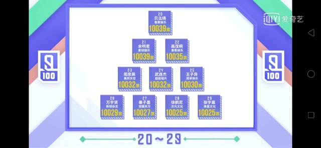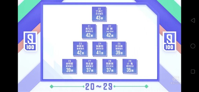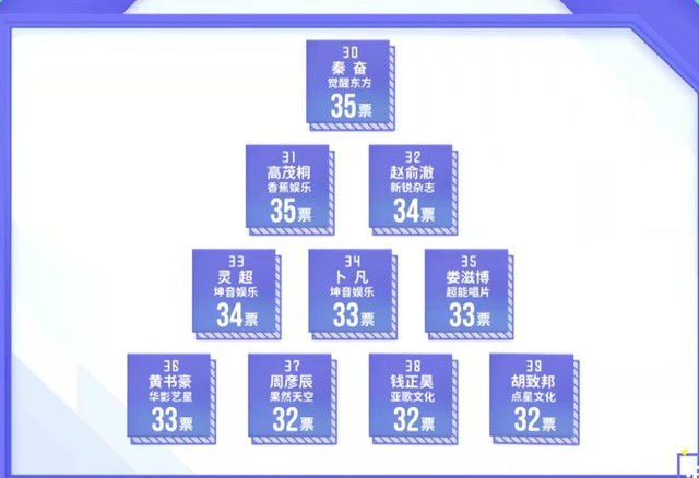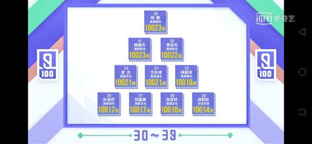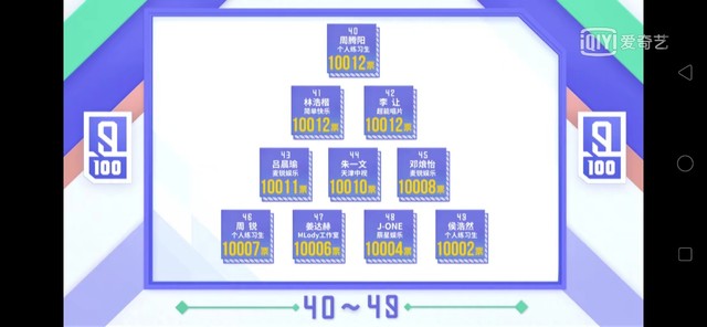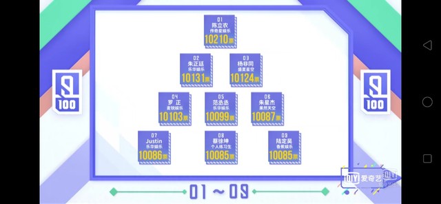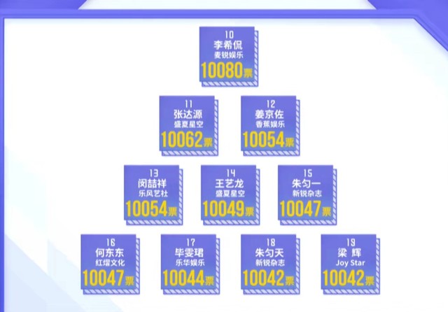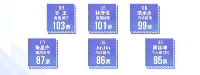 黄冉公开的是经过全民制作人现场投票优胜的八个小组加上10000票以后的排名