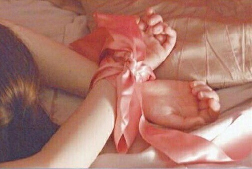 一个少女的双手被绑着,是个漂亮的蝴蝶结。