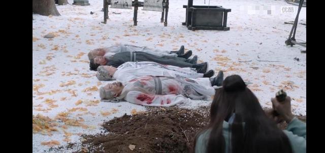 温客行用剑刨着土,面前就是四个老人的尸体,结果剑还断了,看到周子舒走来,他强颜欢笑着,对着这一排尸体道。
