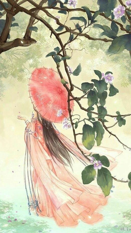 慕容骥和顾一宁来到了桃林,只见微风轻轻吹散下来了些许桃花花瓣中,站着一个撑伞的女子。