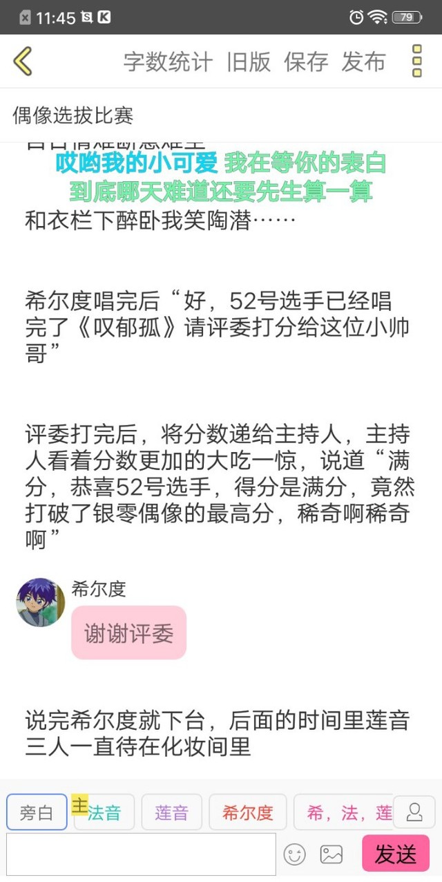 “就是50号选手,51号选手以及满分的52号选手,有请这三位选手上台,在请我们的天泪偶像上台给三位选手颁奖”