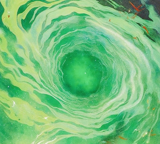 漩涡悬浮在半空中,半金半绿,光鋢萦绕,如梦如幻,微红月色从上方洞口照下来,宛若绝美神邸。