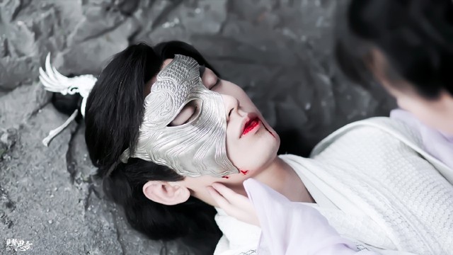很明显,他是左额受了伤。为了查看伤势,也顺便看看你的男主角究竟是怎样的人间绝色,你伸手将他的银色面具摘下。