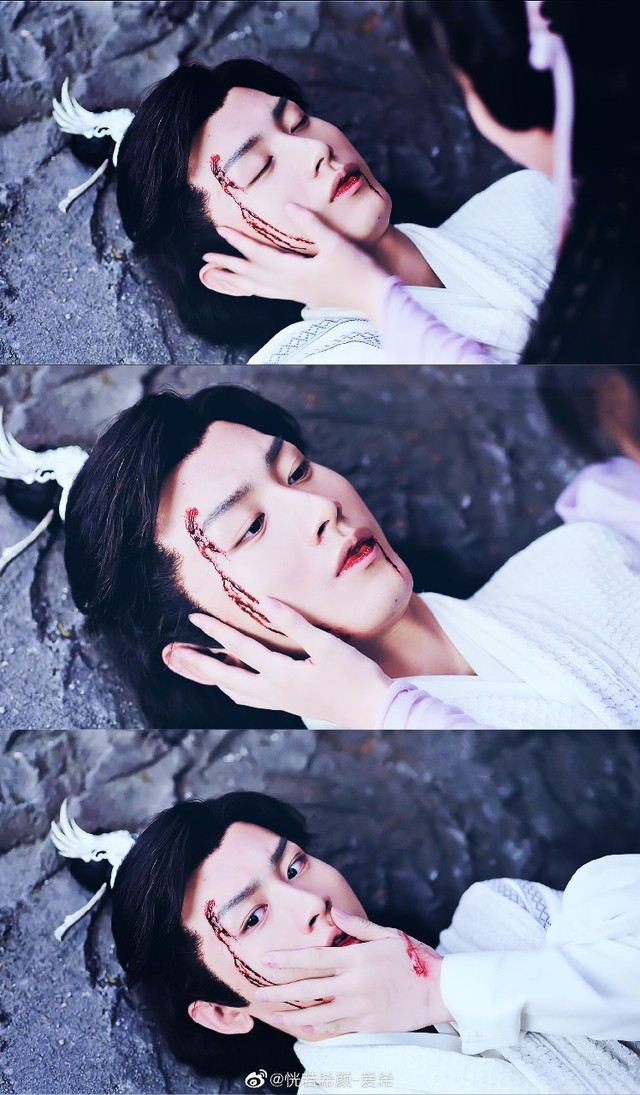 少年为了保护你,主动与烛龙又是一番缠斗,才十八岁的少年终究是不敌上古神兽烛龙败下阵来。他被烛龙掀翻在地,你紧张忙上去查看,发现他的左脸满是血迹。
