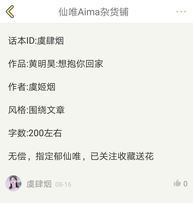 仙唯Aima杂货铺(只接有偿单)最新章节