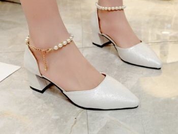 搭配一双白色珍珠坡跟鞋和金色珍珠项链,仙女范十足。