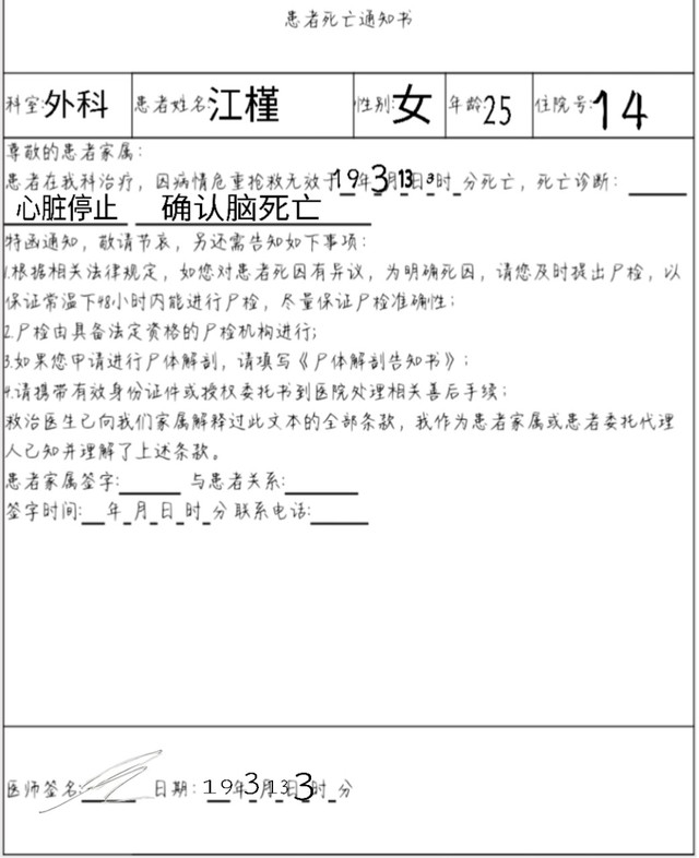 护士长把死亡通知书递给他,退到医生身边