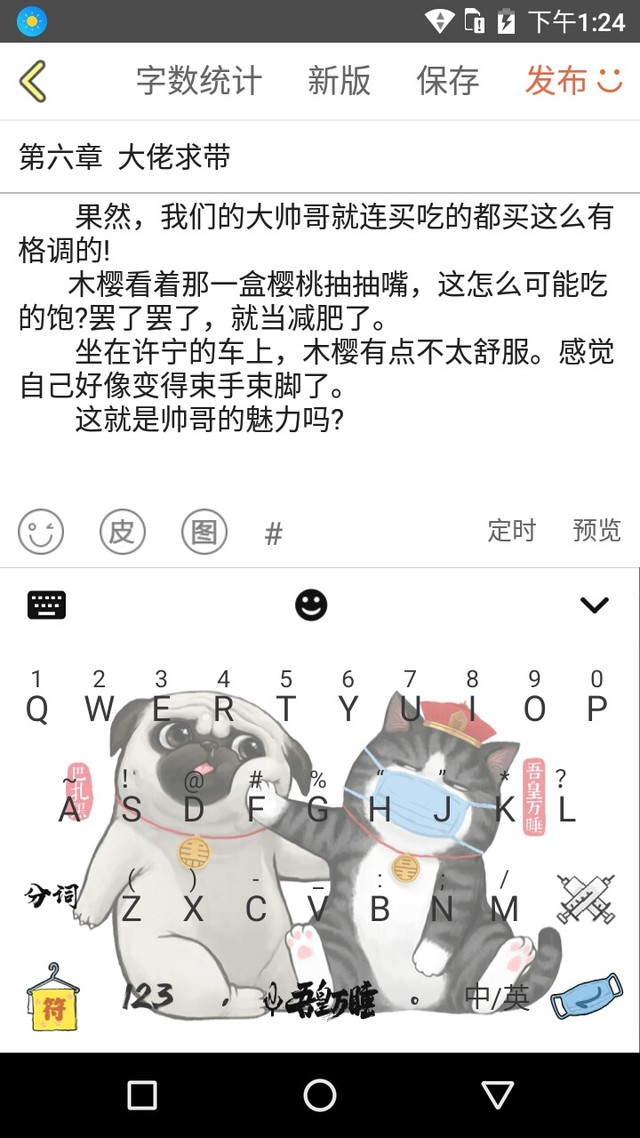 给你们康康我的输入法皮肤,当初我就是看上了那两只才选它的。