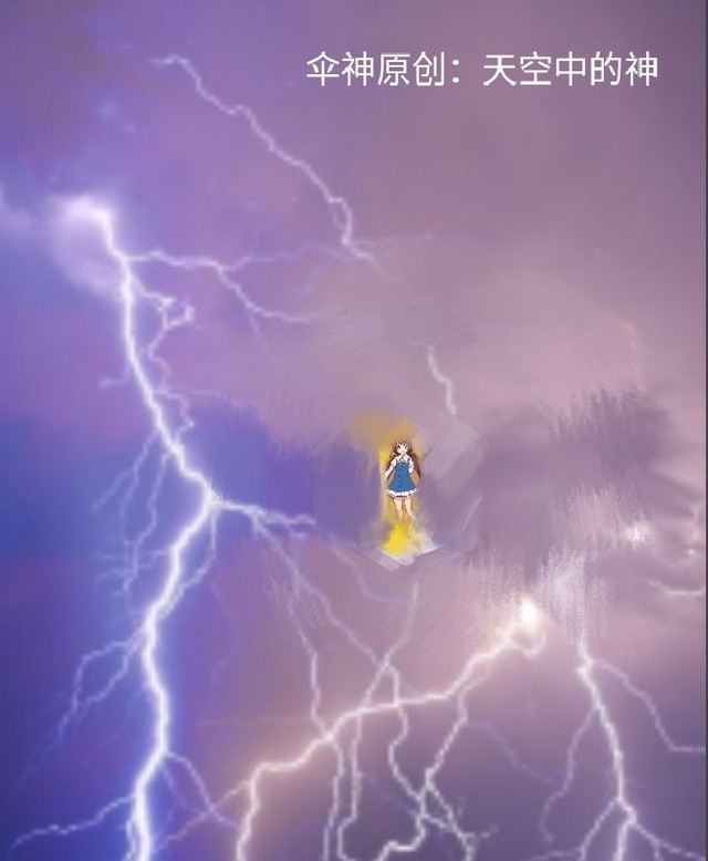 她光着脚浮在空中目不转睛地注视着下面光柱打出的巨大的巨坑,她距离巨坑上空只有100米。旁边的雨在衬托着她,天空中的雷电时不时在她身边串过,可就是打不中她,这就是神审判罪人时的场景呀!