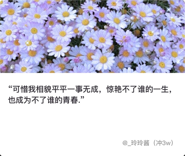 “可惜我相貌平平一事无成,惊艳不了谁的一生,也成为不了谁的青春.”