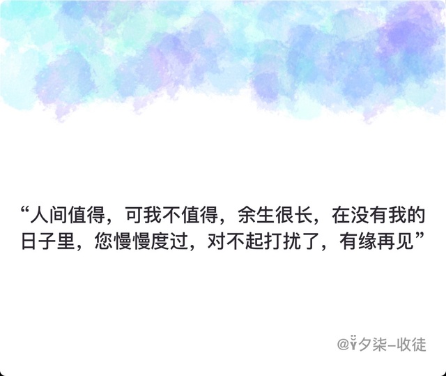 “人间值得,可我不值得,余生很长,在没有我的日子里,您慢慢度过,对不起打扰了,有缘再见”