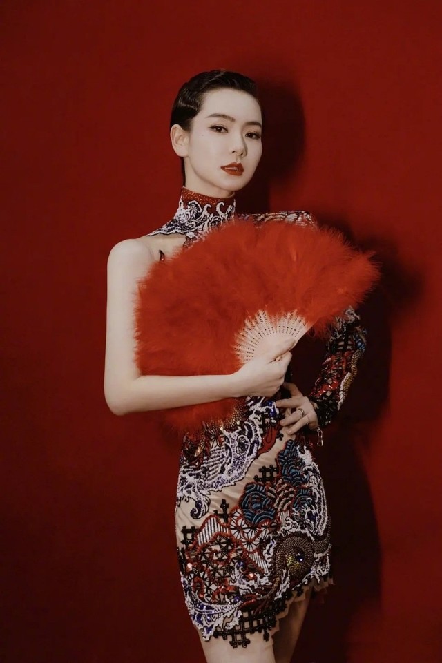 人物整体是非常中式的风格,标准的大红,宫廷样式的耳饰,象征的牡丹,可明明是个混血人又为何有着这种风格?明明眼睛是异瞳为何五官却如此亚洲相?