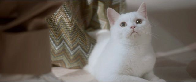 正当沈翊站远些看着这副画作时,藏在桌角下的白色猫猫突然探出头来,一扭一扭的走过来扯了扯沈翊的裤脚。